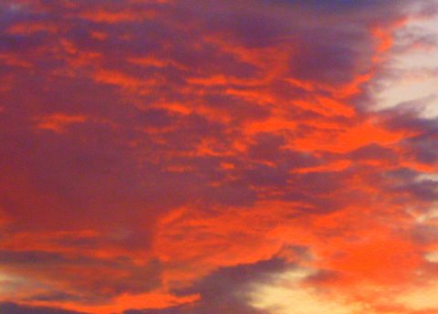 In the dream, an orange cloud spreads at my feet high on a desert mesa, as I pause alone on my trek home. It ripples and shimmers, tissue thin and wide as the darkening sky – as though a feast might be served upon it, or a body folded into sleep. I stoop down and finger the edge of its luminosity; the gentlest tug sets off pleats and ruffles of light. More boldly, then, I wave and air it in the unburdened sky, a flaming bedsheet holding the coming night.