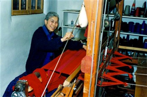 • Hello, this is Karen from Edmonton, Alberta, Canada again. Thank you for forwarding the moving slide show of Alice’s life and work. I so enjoyed seeing her beautiful face at the various stages of her life and it appears that her work became more vibrant and colorful as her life evolved. The cape that I have is all in earth tones with an ochre colored stripe running through greys and beiges. I treasure it. If anyone knows more about what stage of her life this cape is made it I would really appreciate it. I am sure it was made with natural dyes of maybe the walnut, onions etc. Thank you again for sharing such a lovely tribute!