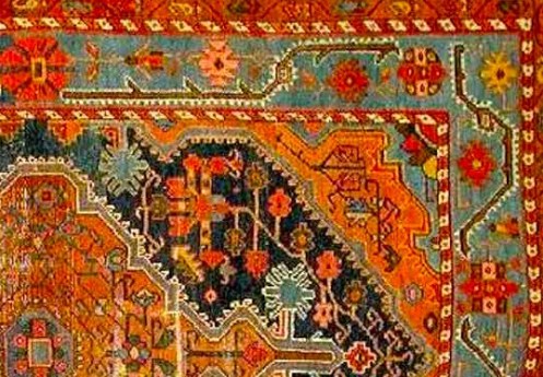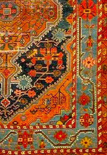 One  night at dinner, she peers closely into the carpet and makes out some writing.  “What do those words say?”, she asks.  “Am I seeing right?  It looks like they say:  The End.”